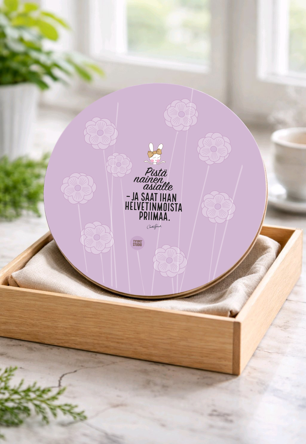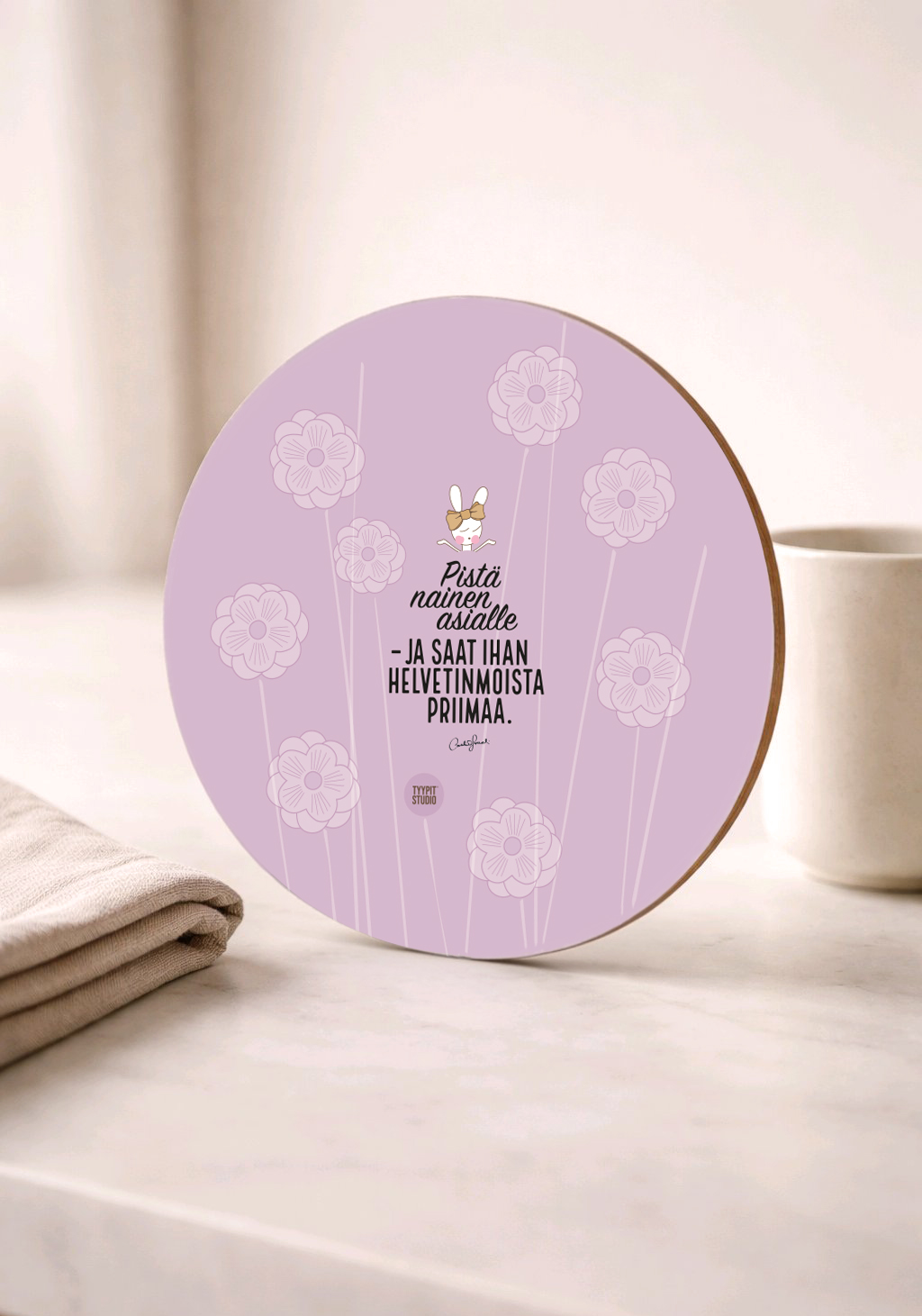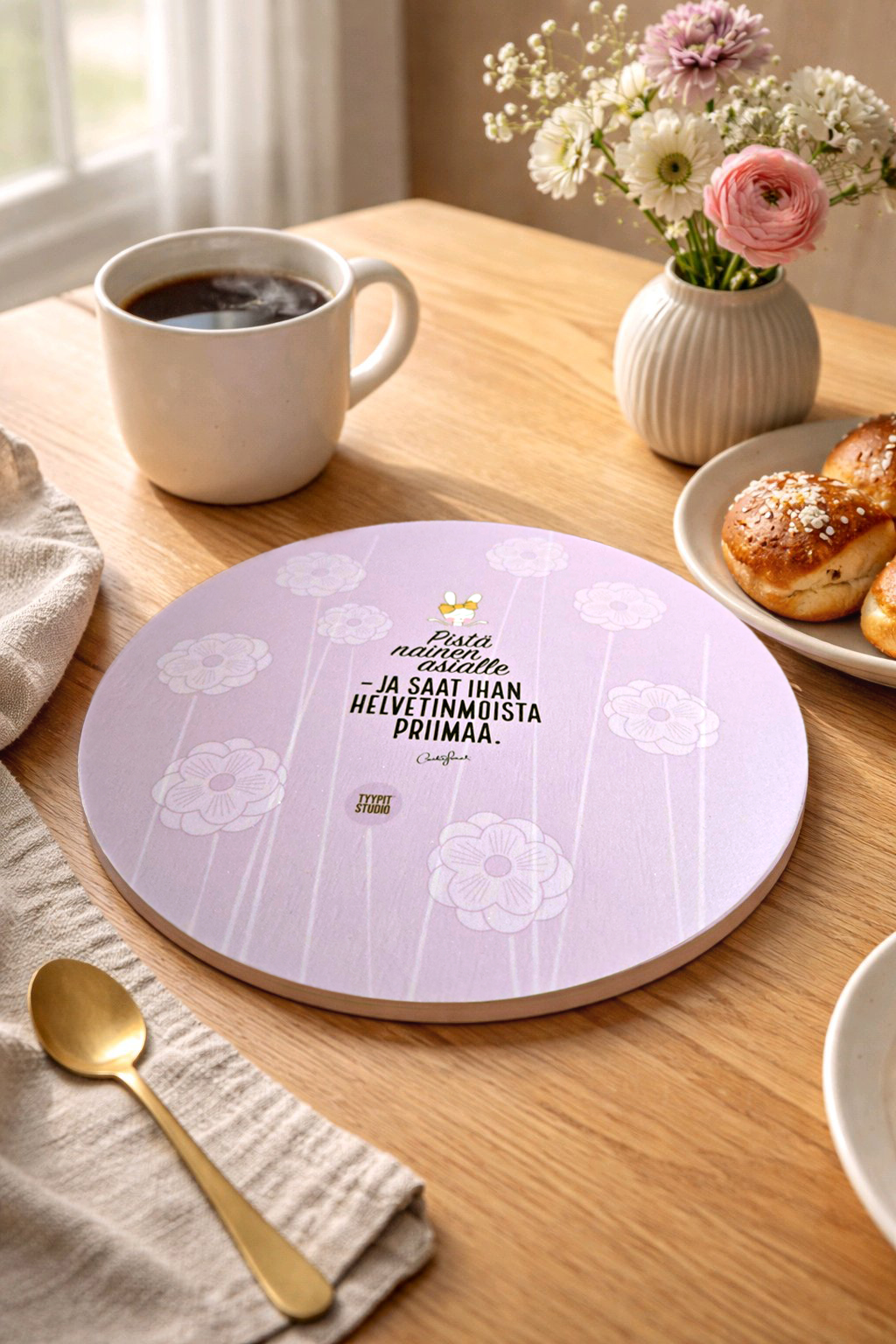 Pienen koon ansiosta helppo säilyttää ja sopii mainiosti moneen: käytä vaikka tarjoilualusena, leipäalusena tai pannunalusena.