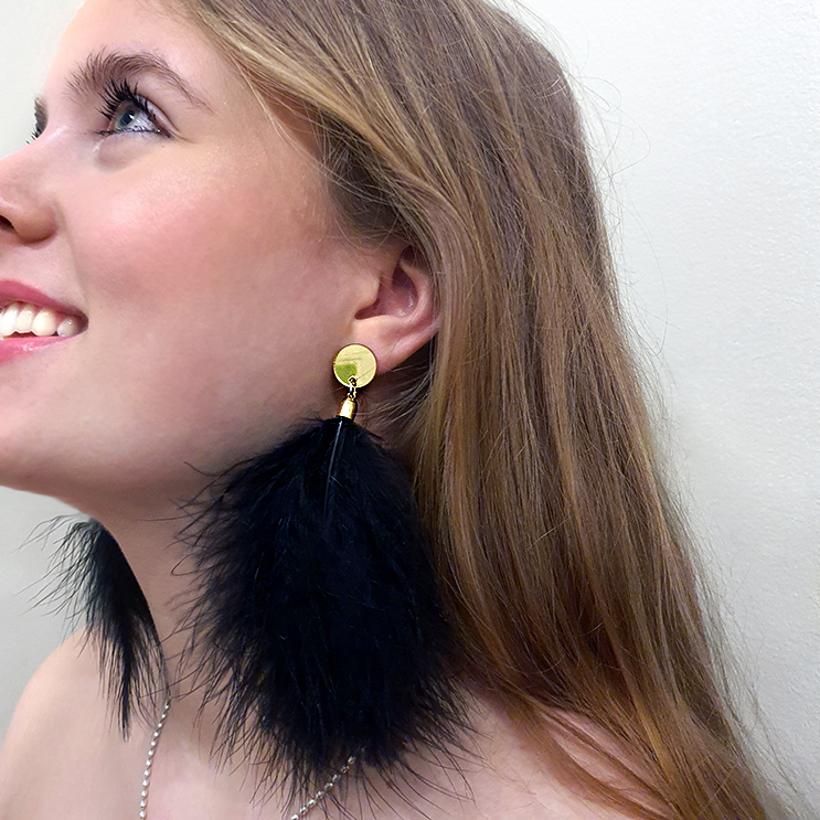 Varaston kätköistä löytyi vielä muutama kpl superlaadukkaita isoja höyheniä (ne oli viimekertaisessa muutossa sijoitettu hyvin tarkkaan jemmaan 😀 ) – niinpä saatavilla kaksi paria näitä tuttuja näyttäviä höyhen-korviksia.