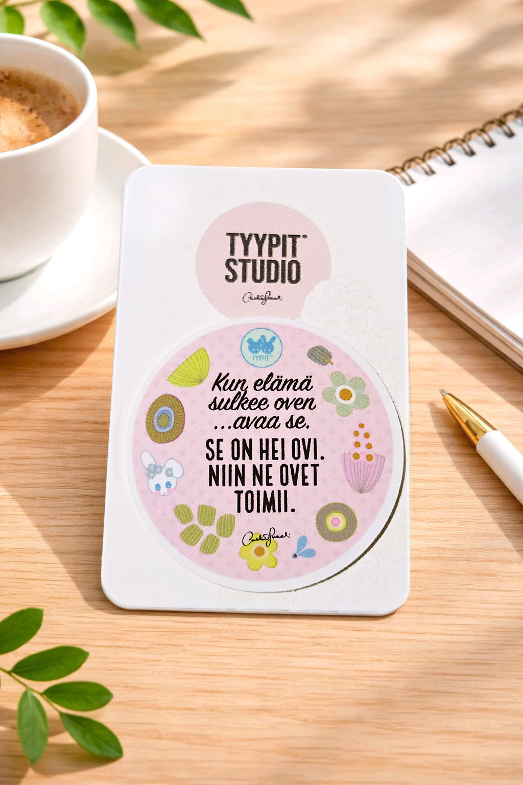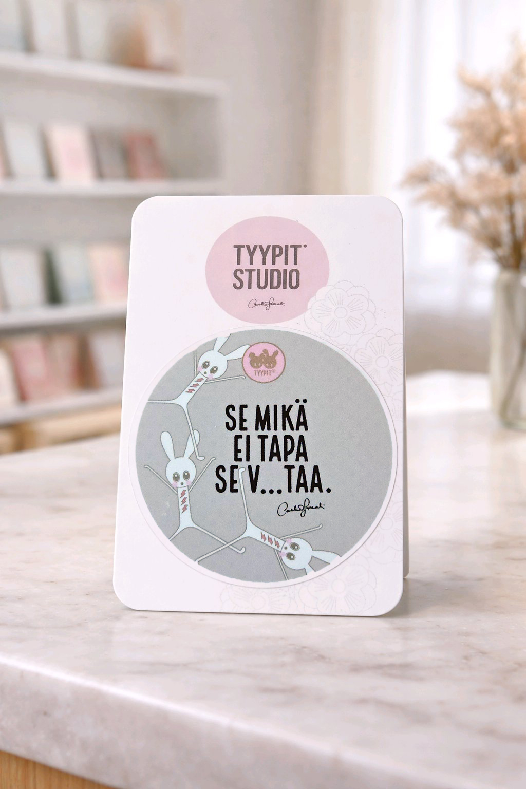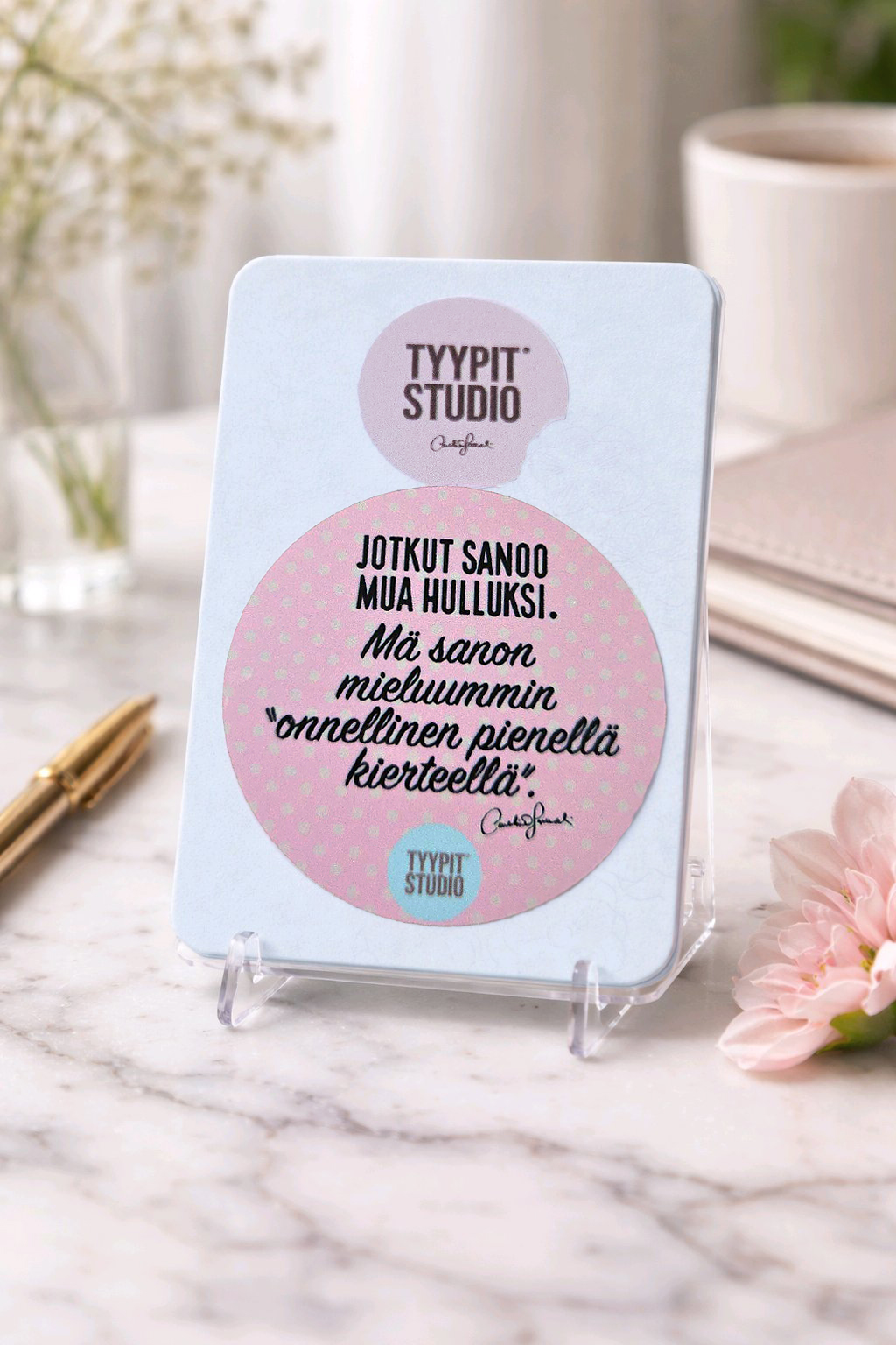 Tyypit Studion kuolemattomat saat nyt kiinni lähes mihin tahansa: puhelimen koristeeksi, läppärin tai kalenterin kanteen, bujoiluun, skräppäilyyn, tunnisteeksi juomapulloon, matkalaukkuun tai pyöräilykypärään… No mihin ikinä!
