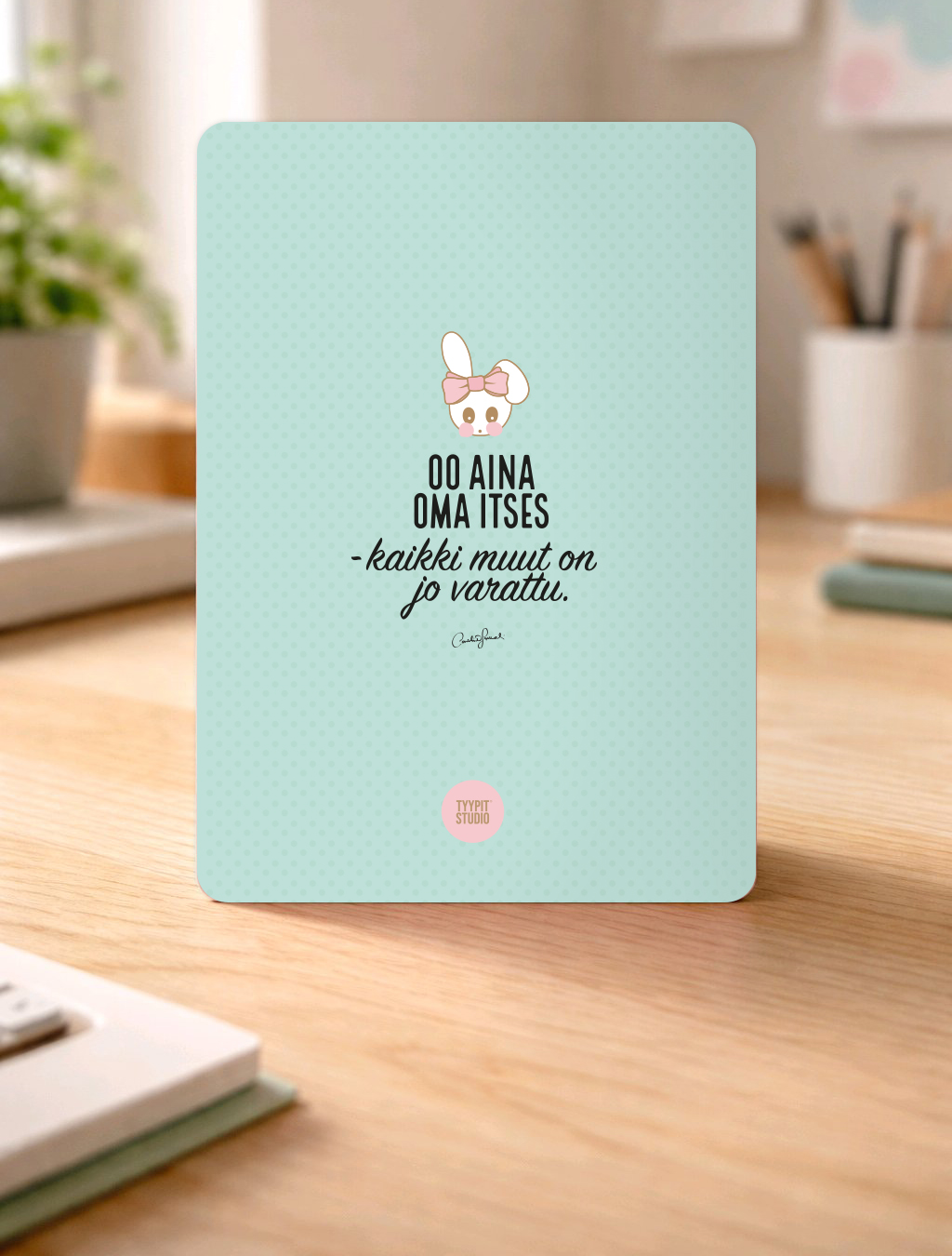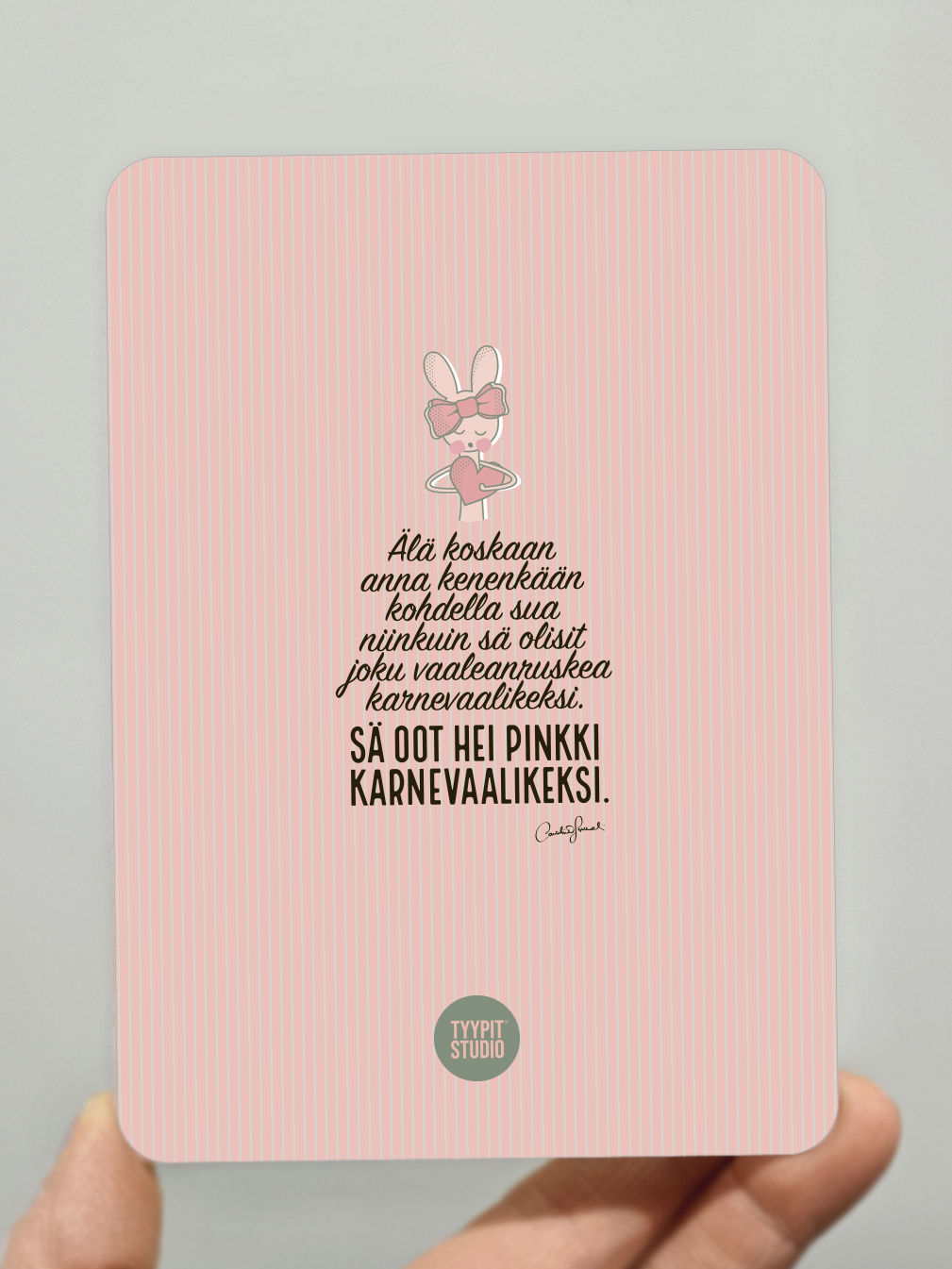 Tyypit Studion Voimalauseet laadukkaina postikortteina.